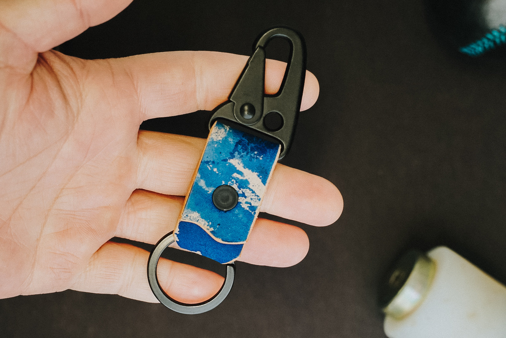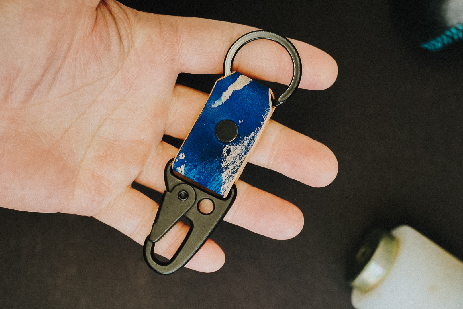 This matte black tactical keyring is made with blue Rocado Shell Cordovan.