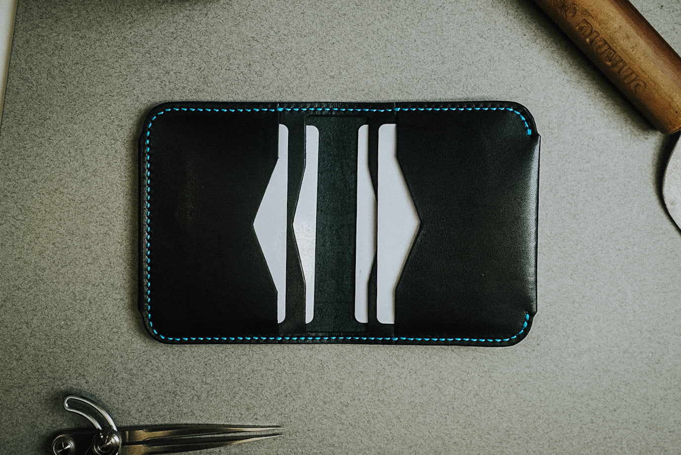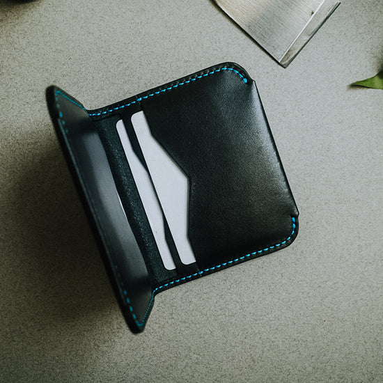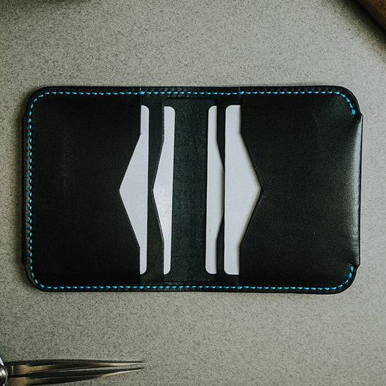 The Covington is a minimal 4 pocket (5th pocket option available) cardholder that can carry 8-12 cards. A 5th pocket can be added to the front of the wallet for a quick card access option.