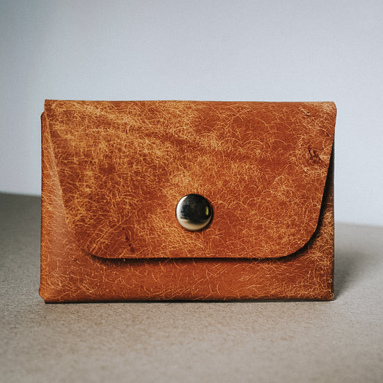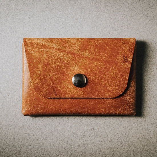 This cardholder is made from brown Brushed Guacho Oil leather from La Bretagna Tannery in Tuscany Italy!