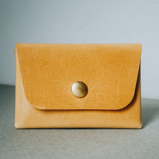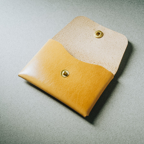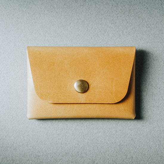 This cardholder is made from a beautiful natural Guacho Oil from La Bretagna in Tuscany Italy.