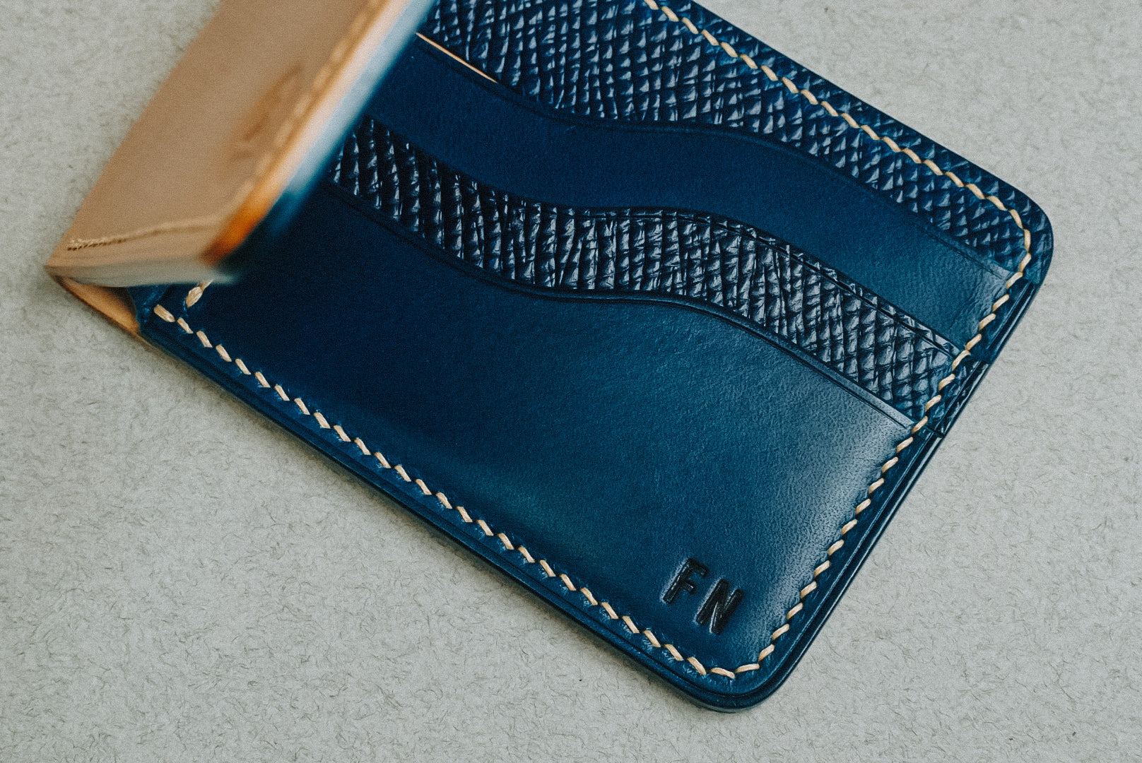 This Voyager is made with a stunning exterior panel of Corium Shell Cordovan, and complemented with an interior made of navy buttero and navy hatch buttero.