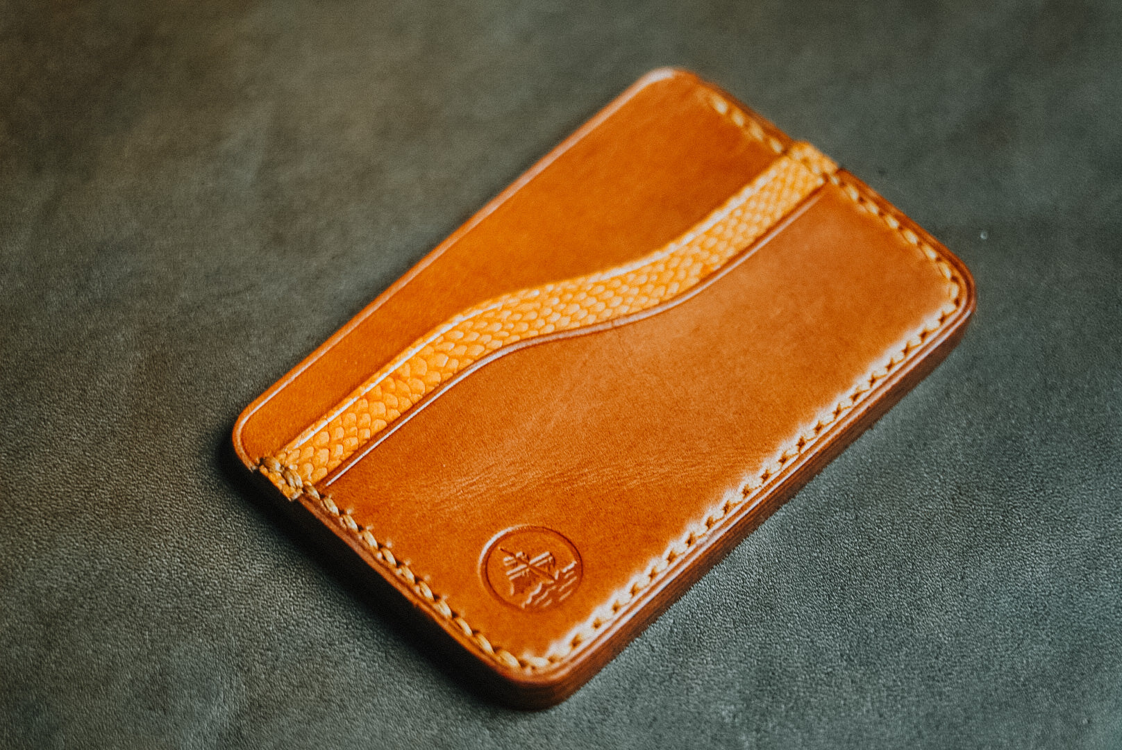 4-pocket Endeavour made from made from Whiskey Buttero and Salmon skin