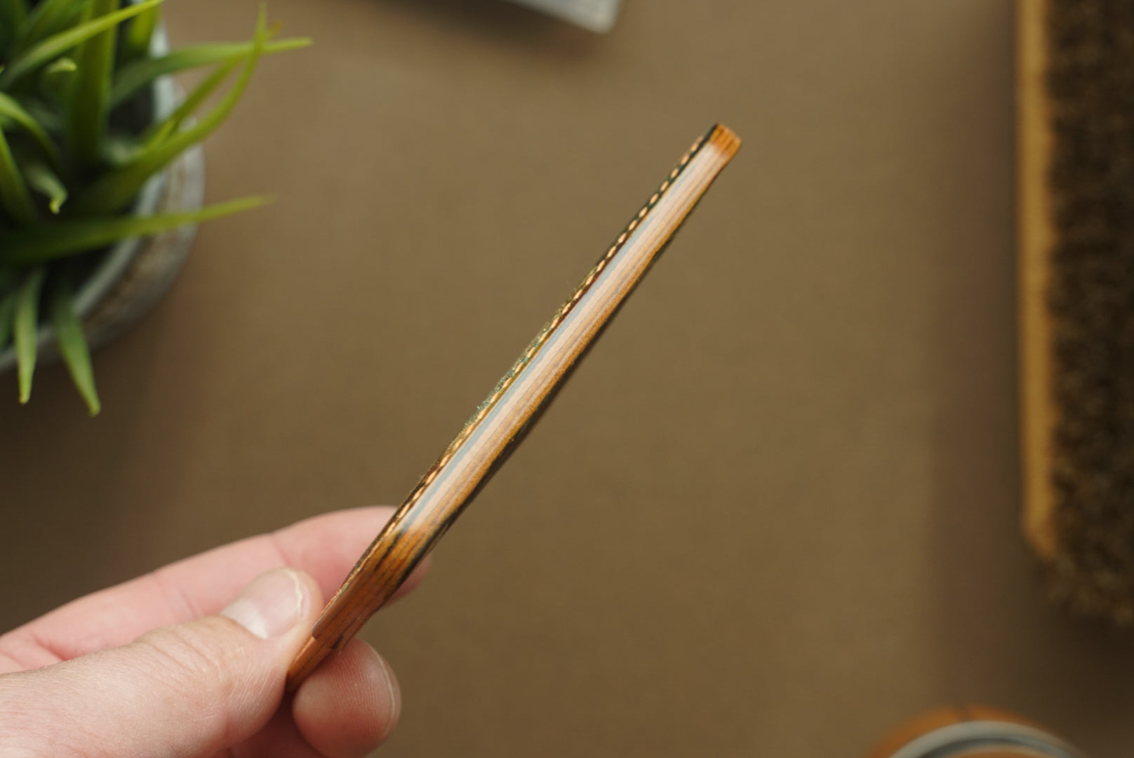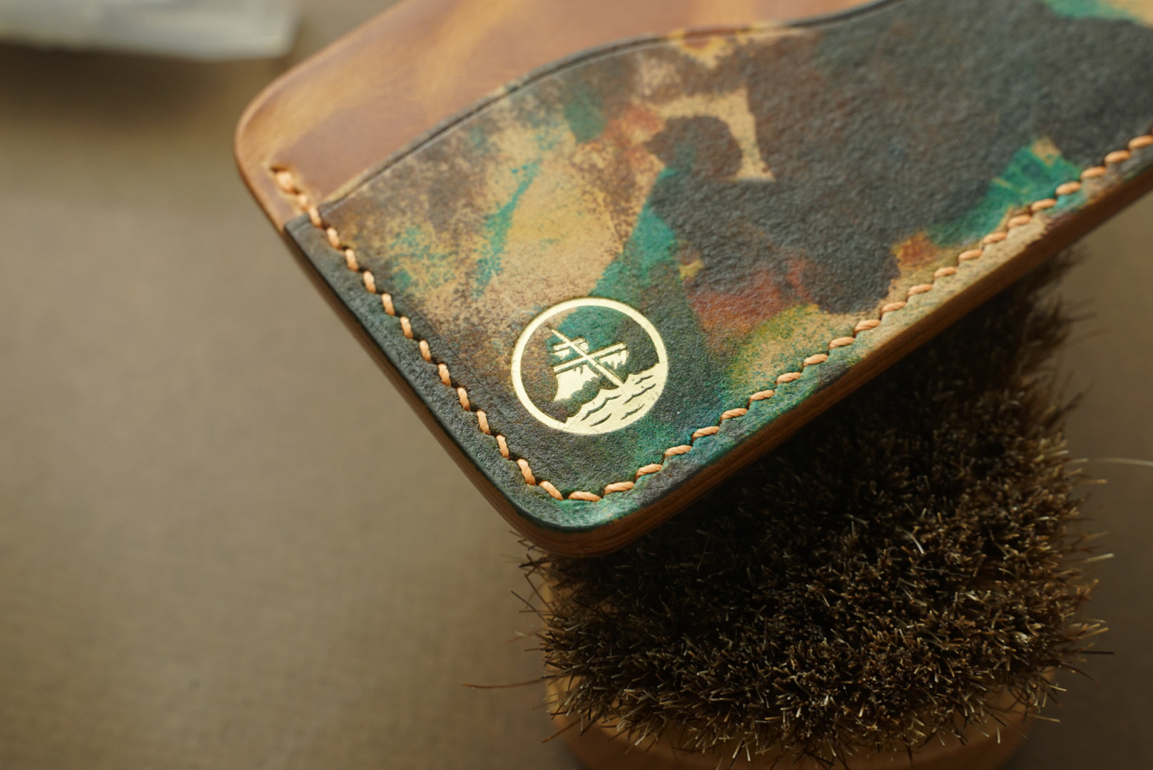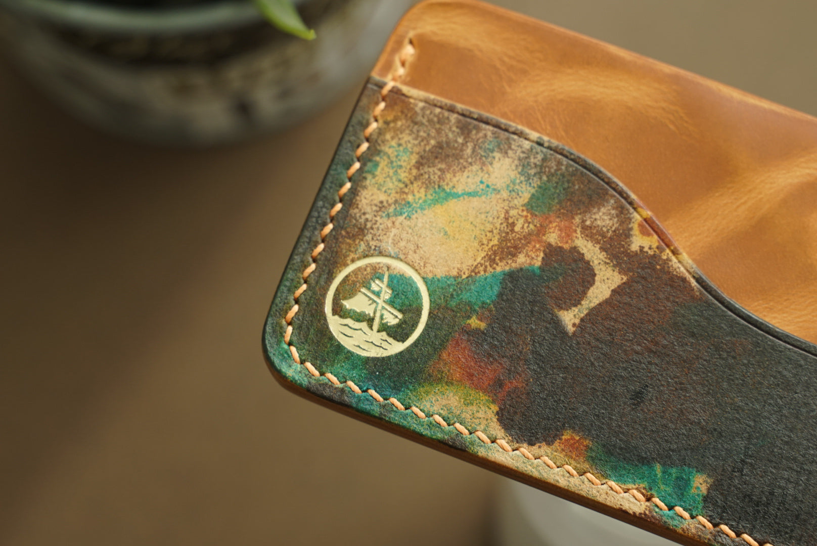 This 3-pocket Endeavour has outer pockets made from black Corium Toscano Shell Cordovan and has middle pockets made of Natural Waxy Badallassi.