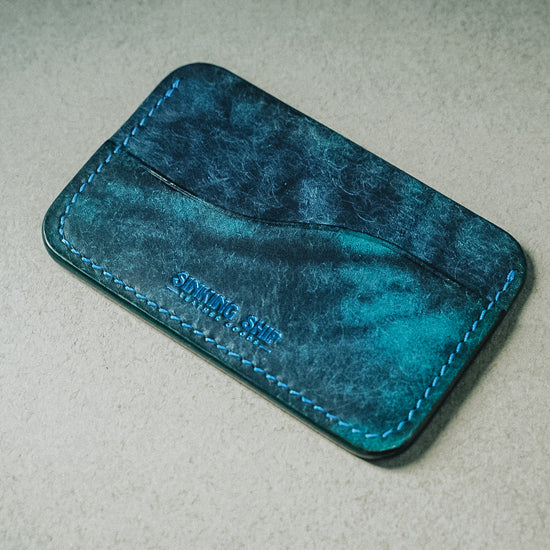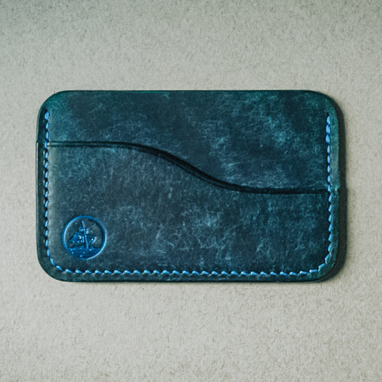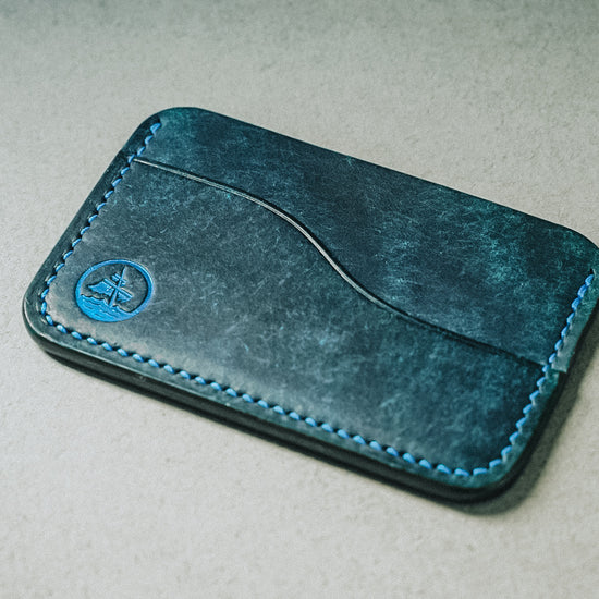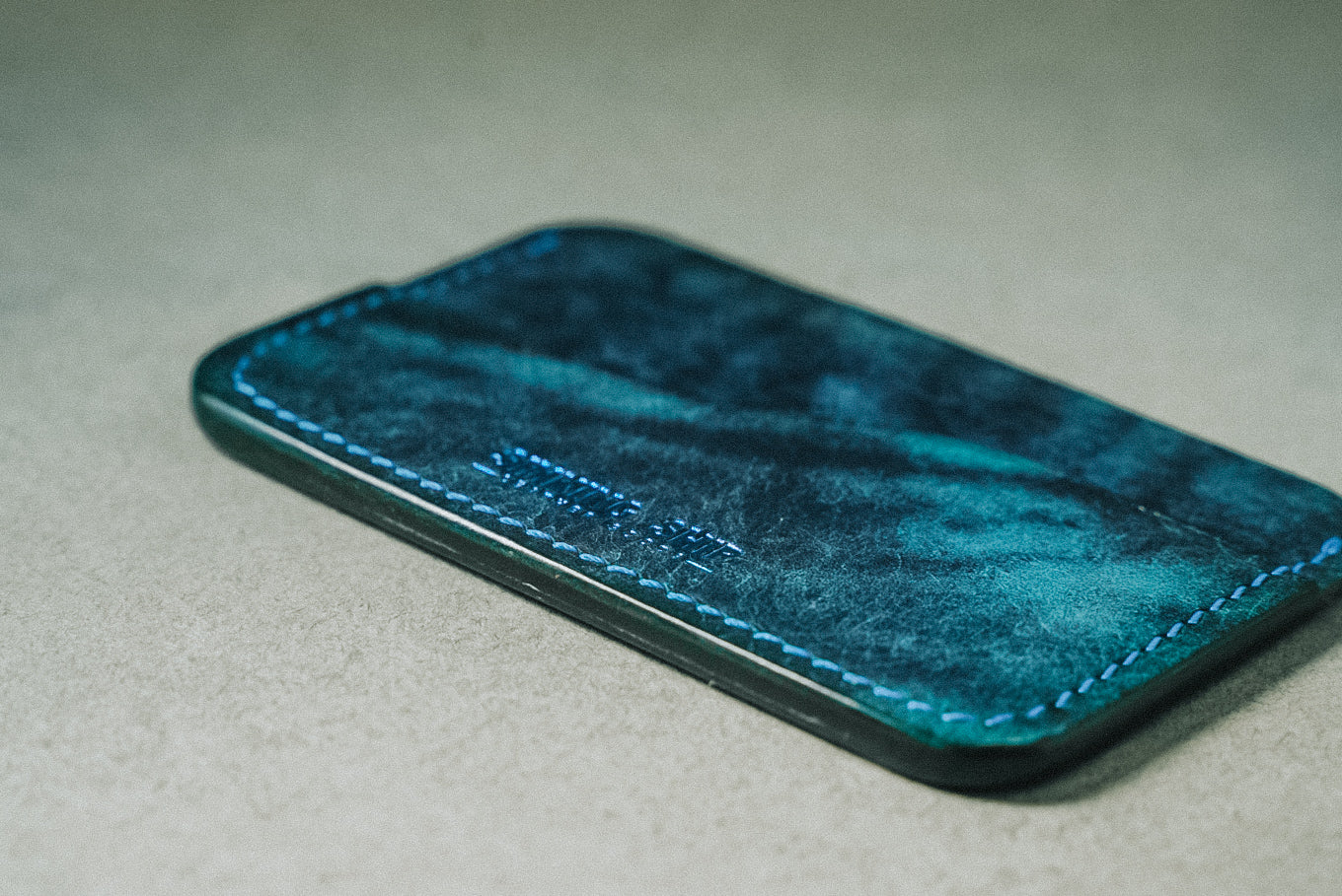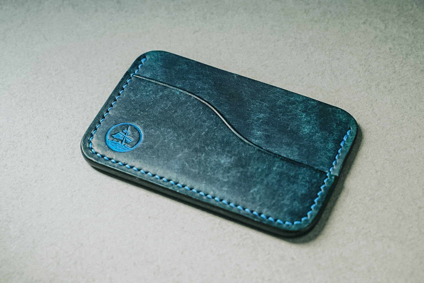 This Endeavour is made from Sapphire Peublo leather from the world renown Badalassi Carlo Tannery in Italy. This ones tiedtogether with a sky blue colored thread and has a blue foil stamp.