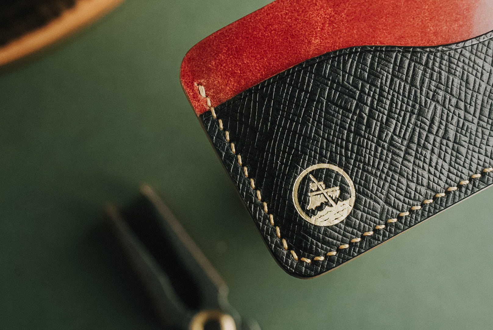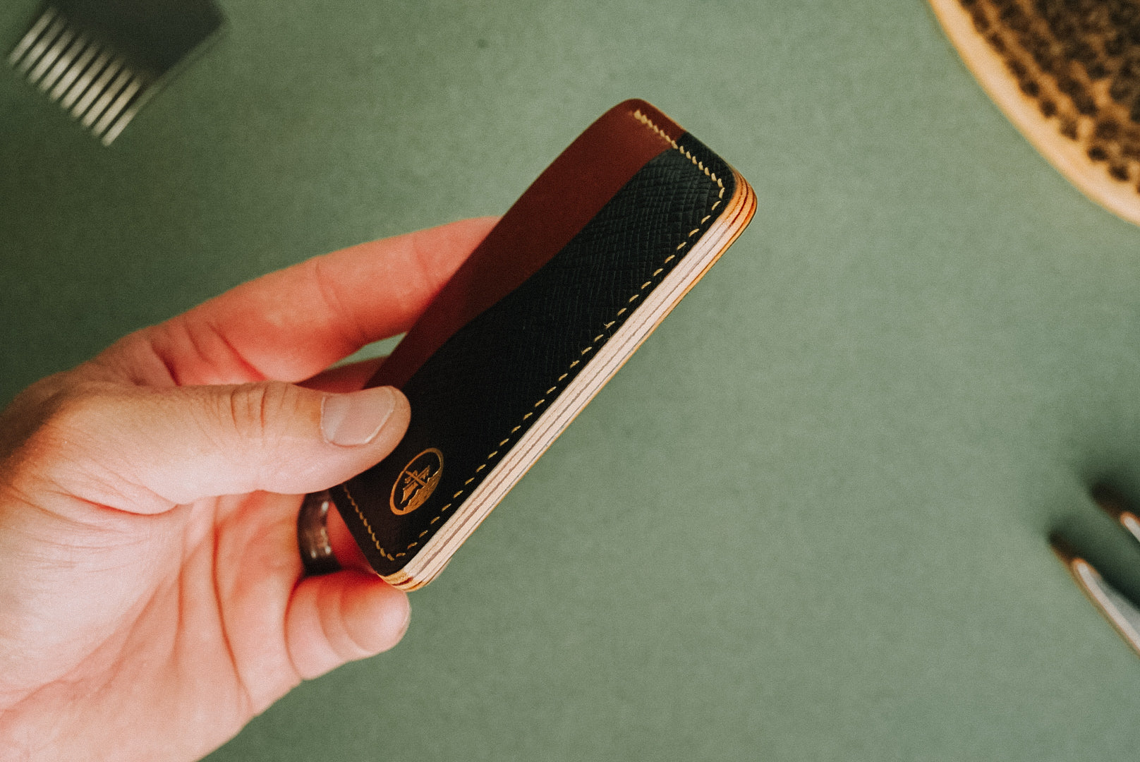 This 3-pocket Endeavour has outer pockets made from black Corium Toscano Shell Cordovan and has middle pockets made of Sienna Rocado Shell Cordovan.