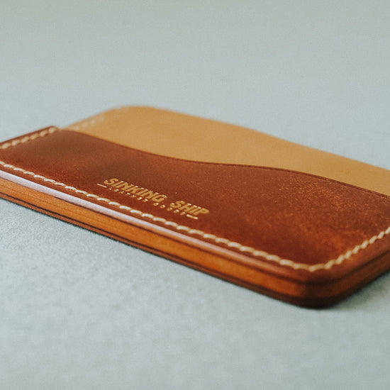 This 3-pocket Endeavour has outer pockets made from Sienna Rocado Shell Cordovan and has middle pockets made of Natural Rocado Shell Cordovan.
