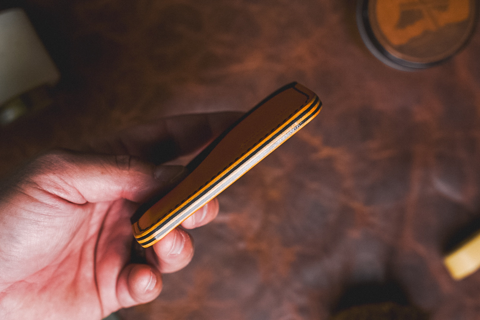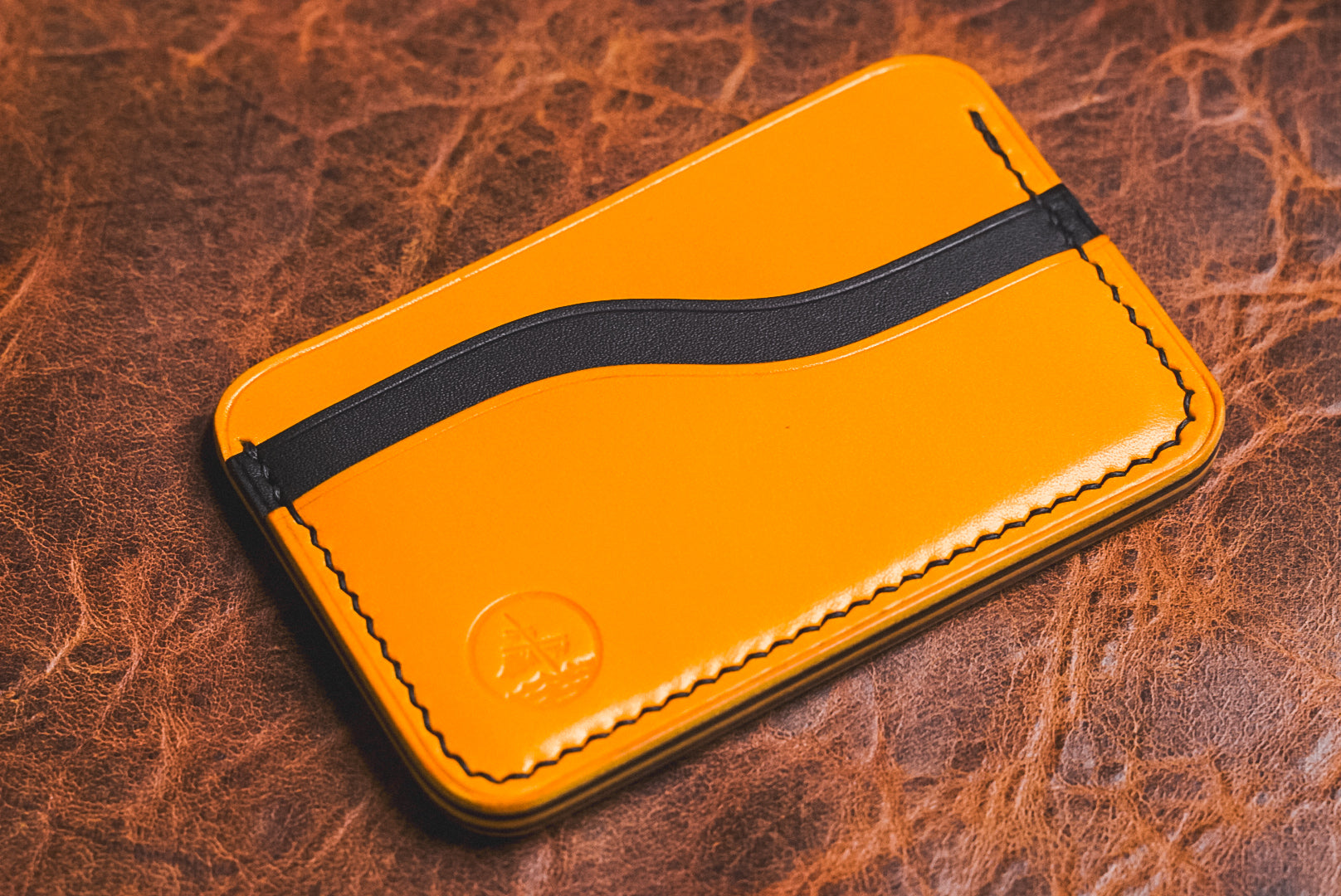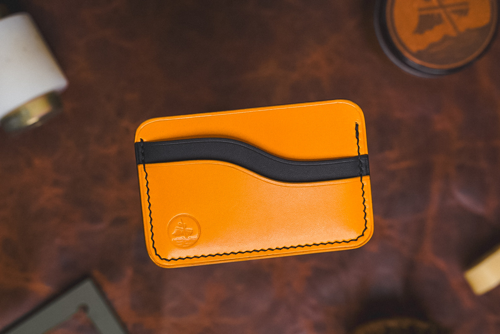 4-pocket Endeavour made from Mustard Tochigi and Black vegetable tan leather from Masure.
