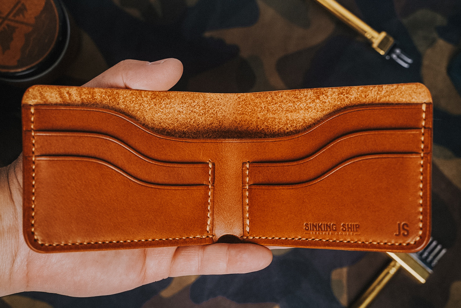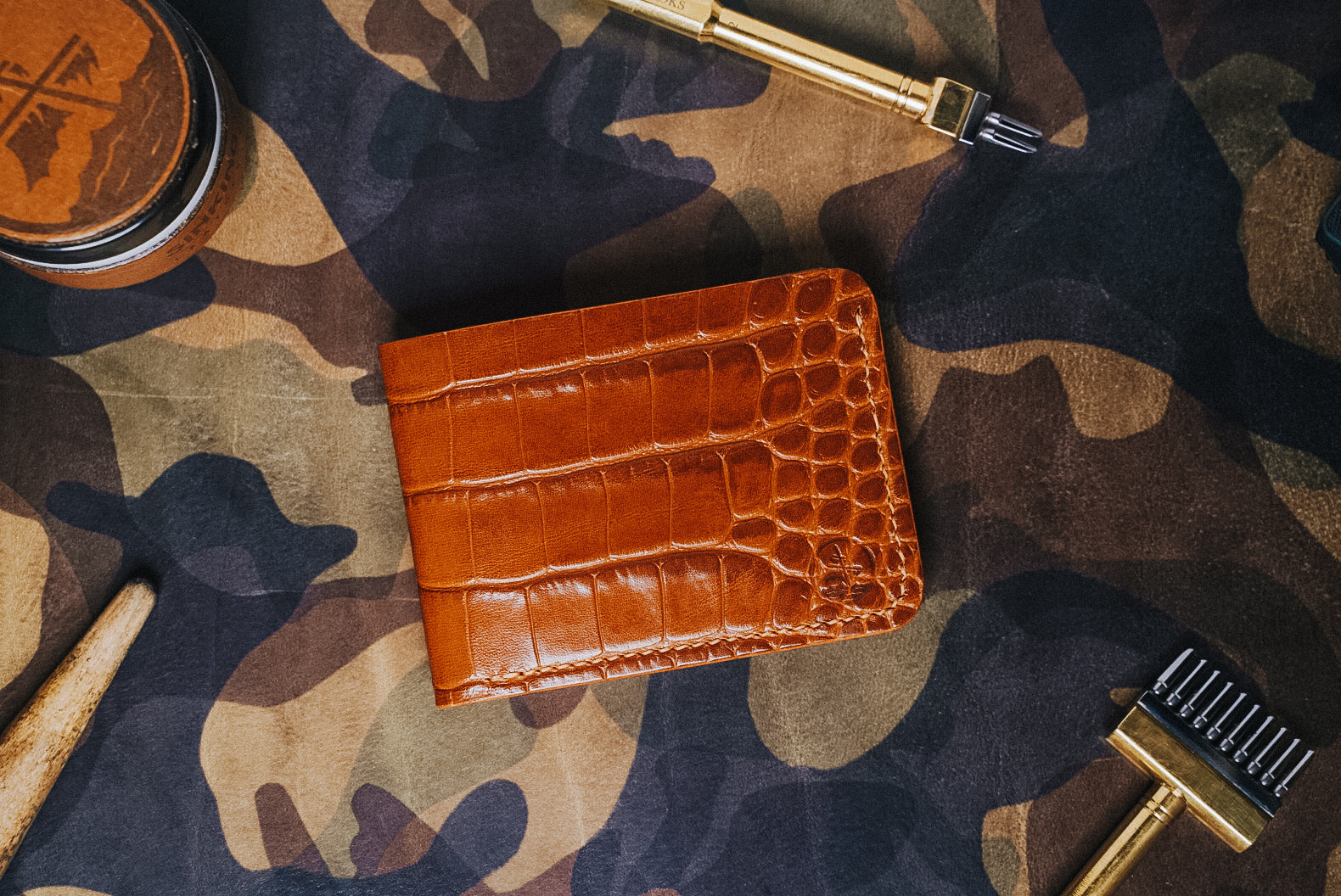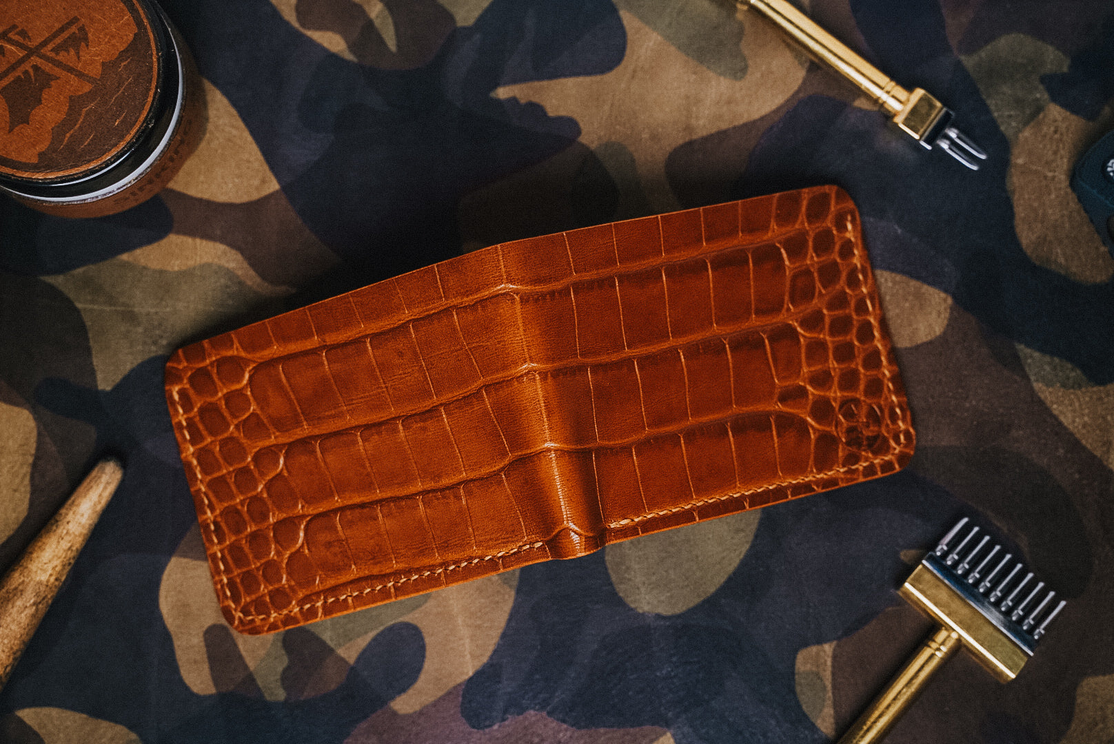 Wallet seen here is made from MPG Louisiana (embossed gator) and whiskey Buttero.