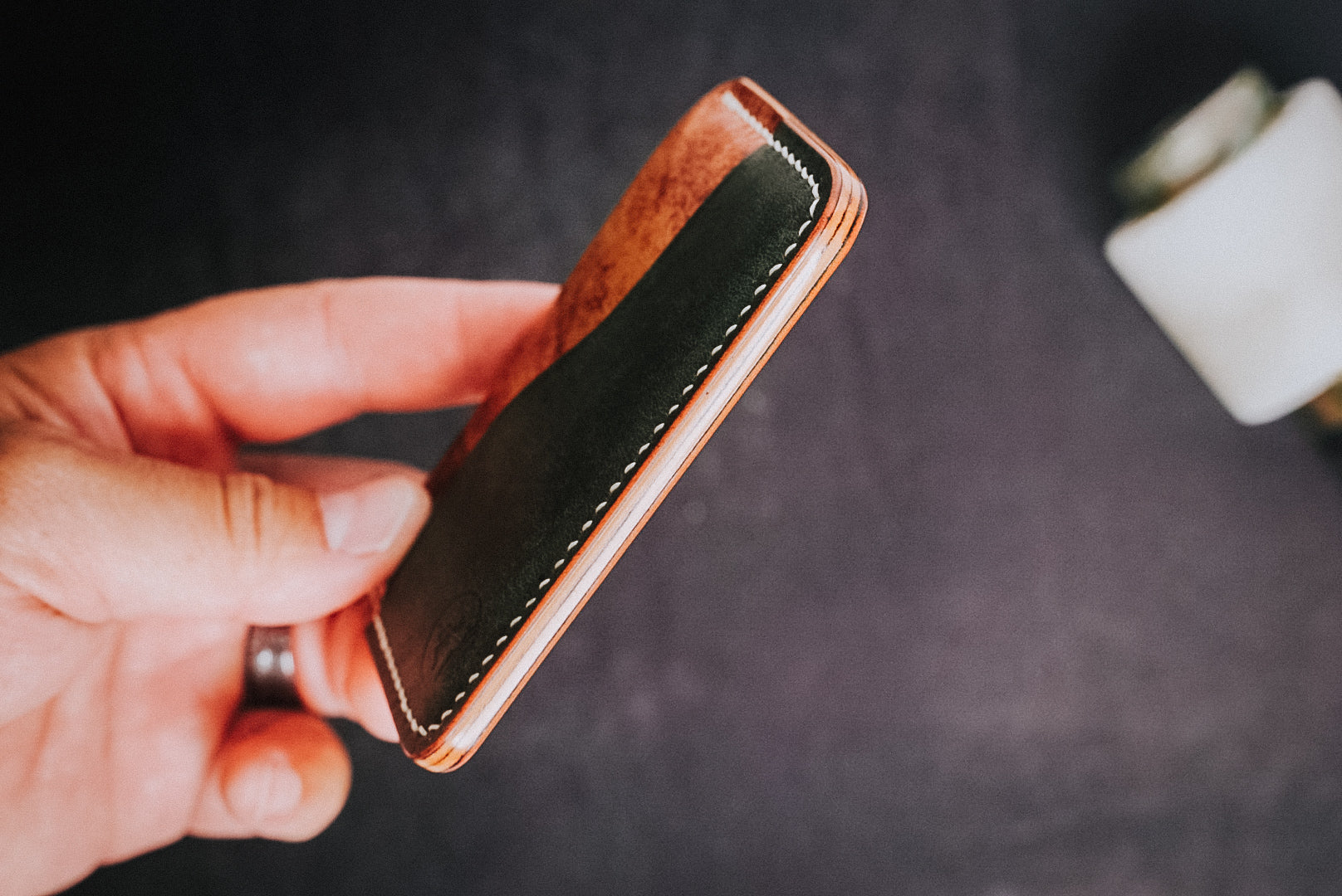 This 3-pocket Endeavour has outer pockets made from reversed Horween Shell Cordovan and has middle pockets made of Sienna Rocado Shell Cordovan.