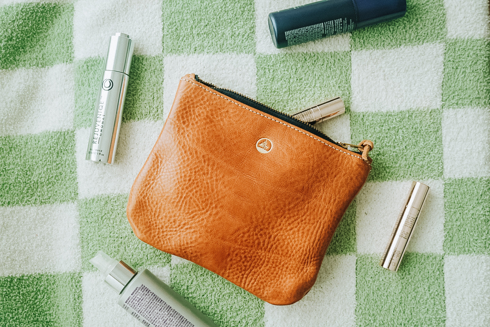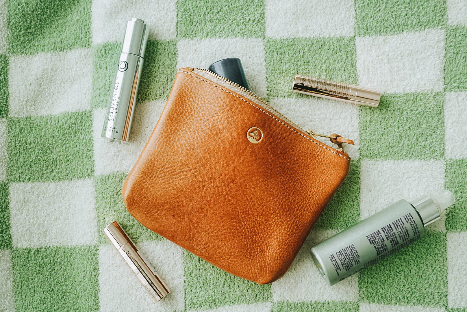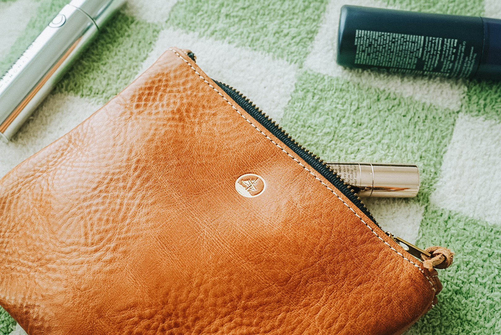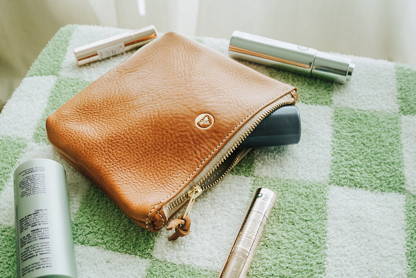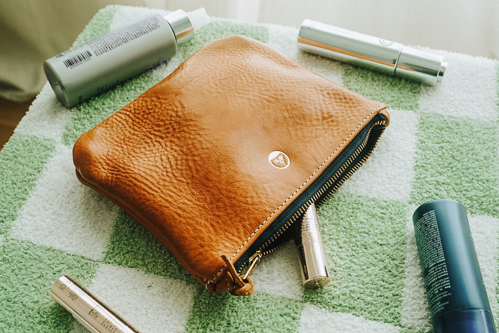 This make-up bag is crafted from premium Italian vegetable tanned leather from Conceria La Bretagna.