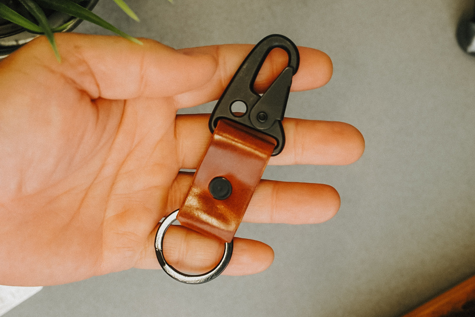 This matte black tactical keyring is made with Sienna Rocado Shell Cordovan.